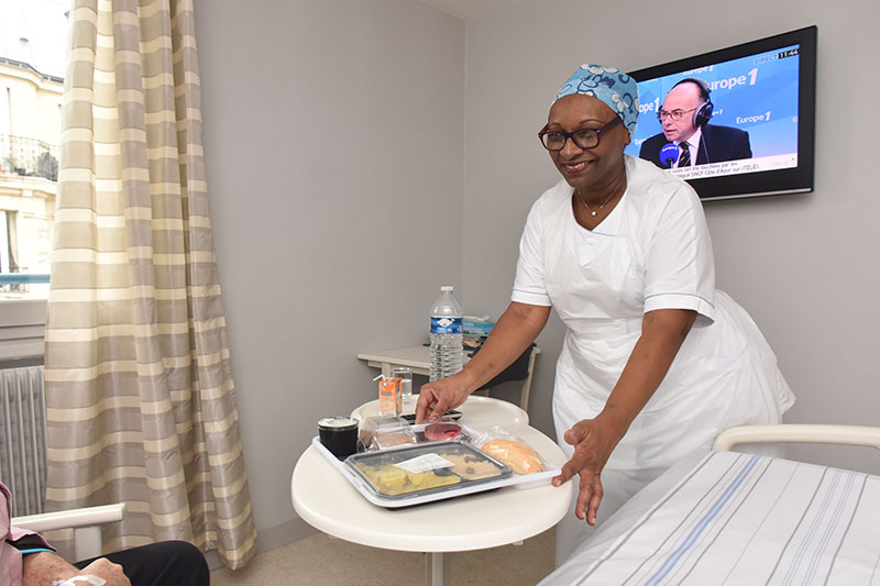 Les repas sont servis dans votre chambre sur un plateau individuel. Ils répondent à un bon équilibre nutritionnel et sont confectionnés par notre prestataire de restauration et notre équipe de cuisine supervisée par un responsable cuisinier.